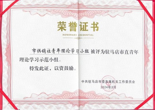 在3月15日召開的市直青年理論學習提升工程表彰暨學習經驗交流分享會上,市供銷社青年理論學習小組被表彰為市直青年理論學習示范小組,系市直首次表彰的8個示范小組之一。