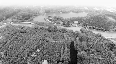 4月27日,改造提升后的禹州城市森林植物園,滿眼蒼翠欲滴,建筑古色古香,讓人賞心悅目。(牛書培 攝)