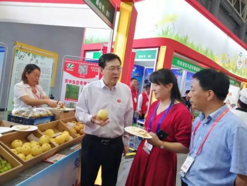 劉延生在參加第22屆中國國際農產品加工業投資貿易洽談會開幕式后,在省市有關部門負責同志的陪同下,參觀了農洽會扶貧展館,認真聽取了駐馬店市特色農產品產銷對接扶貧、產業扶貧、電商扶貧、消費扶貧的情況介紹。在驛城區展臺前,劉延生詳細詢問了天中生態農業科技有限公司為農服務開展情況,對他們通過產業帶動農民脫貧致富的做法給予了充分肯定。