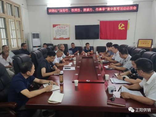 9月9日下午,正陽縣供銷社在縣供銷社二樓會議室,召開“強黨性、敢擔當、提能力、作表率”集中教育活動動員會?h委集中教育活動第四督導組蒞臨指導,縣供銷社機關全體工作人員、各直屬公司經理、支部書記參加了會議。