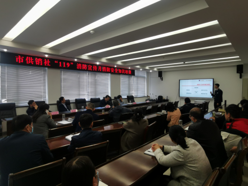 為提高市社直屬系統干部職工的消防安全意識,營造人人學習消防、人人參與消防、人人重視消防的良好氛圍,11月10日,市供銷社組織開展了消防安全知識培訓,市社機關全體人員和直屬單位主要負責同志參加了培訓,理事會副主任馬保紅主持。
