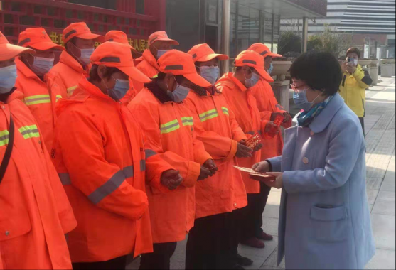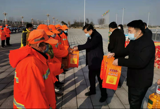 栗玉欣和開發(fā)區(qū)領(lǐng)導(dǎo)向一線工作的保潔人員送去慰問品